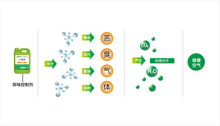 02.中和法新型技術,除臭劑霧化成分子吸附異味分子使之沉降,并氧化生成無毒無味產物,同時保留香氣